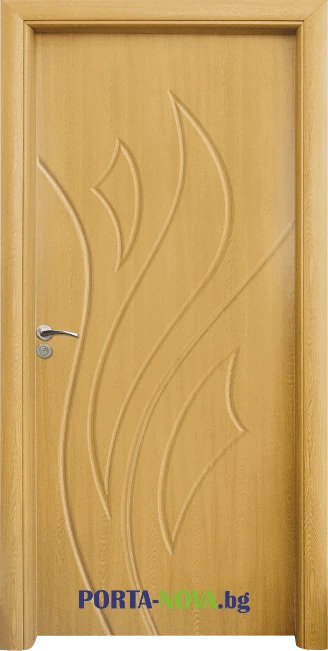 Интериорна врата Стандарт. Крилото е изработено от HDF плоскости с дебелина 6 мм. Рамката е от масивна иглолистна дървесина, подсилена в средата с HDF оребряване. Моделът е със стилна фрезовка.