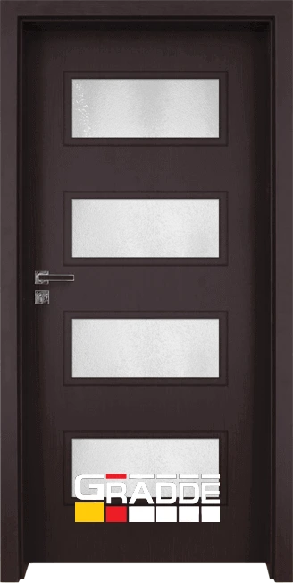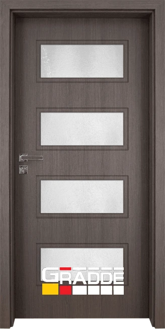 Висококачествени интериорни врати от HDF. Характерно за серия Gradde е, че крилото е изцяло облечено, без видимо прекъсване на покритието, с дебелина 40 мм. Изработени по иновативна технология, тези врати са с много по-голяма устойчивост на износване и повреди.