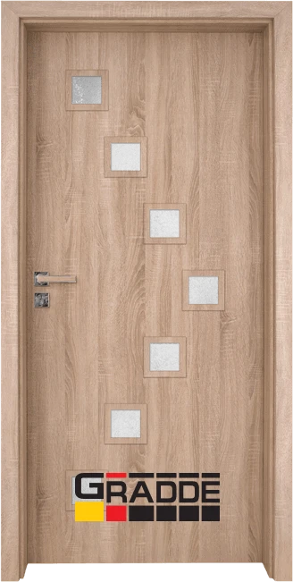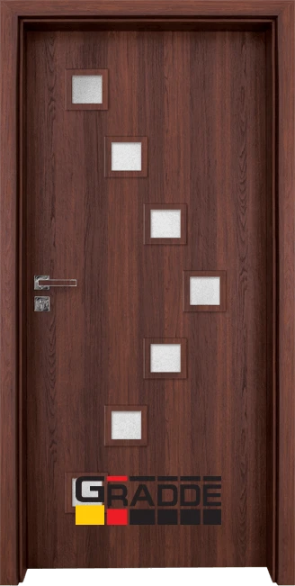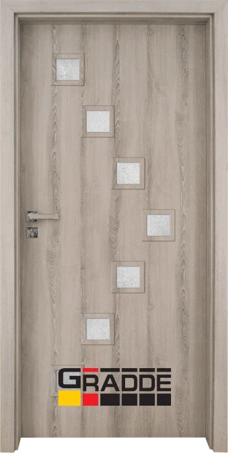 Висококачествени интериорни врати от HDF. Характерно за серия Gradde е, че крилото е изцяло облечено, без видимо прекъсване на покритието, с дебелина 40 мм. Изработени по иновативна технология, тези врати са с много по-голяма устойчивост на износване и повреди.